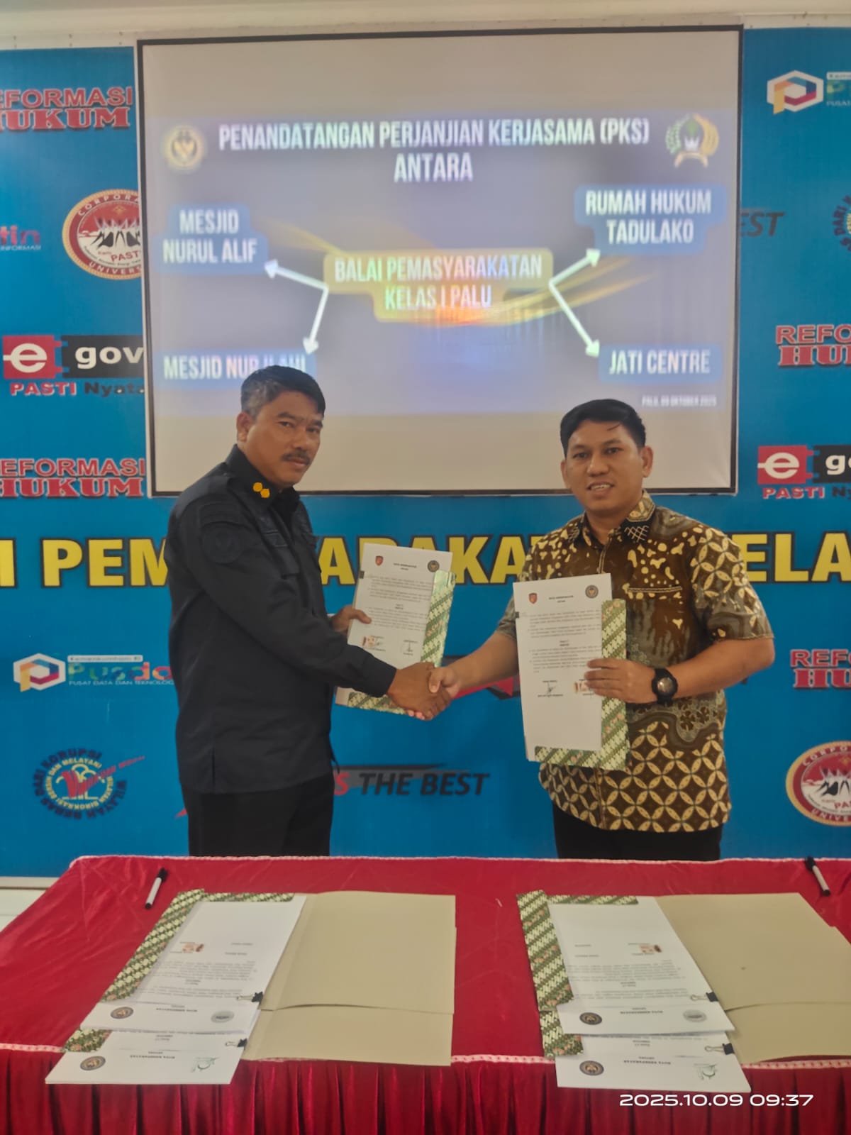 Palu – Balai Pemasyarakatan (Bapas) Kelas I Palu secara resmi menandatangani Perjanjian Kerjasama dengan LBH Rumah Hukum Tadulako pada 9 Oktober, bertempat di Aula Kantor Balai Pemasyarakatan Palu. Kerjasama ini terkait dengan penyediaan tempat pelaksanaan pidana kerja sosial bagi pelaku dewasa dan pidana pelayanan masyarakat bagi anak sesuai dengan ketentuan Undang-Undang Republik Indonesia Nomor 1 Tahun 2023 tentang Kitab Undang-Undang Hukum Pidana (KUHP) baru yang akan mulai berlaku efektif pada tanggal 2 Januari 2026.