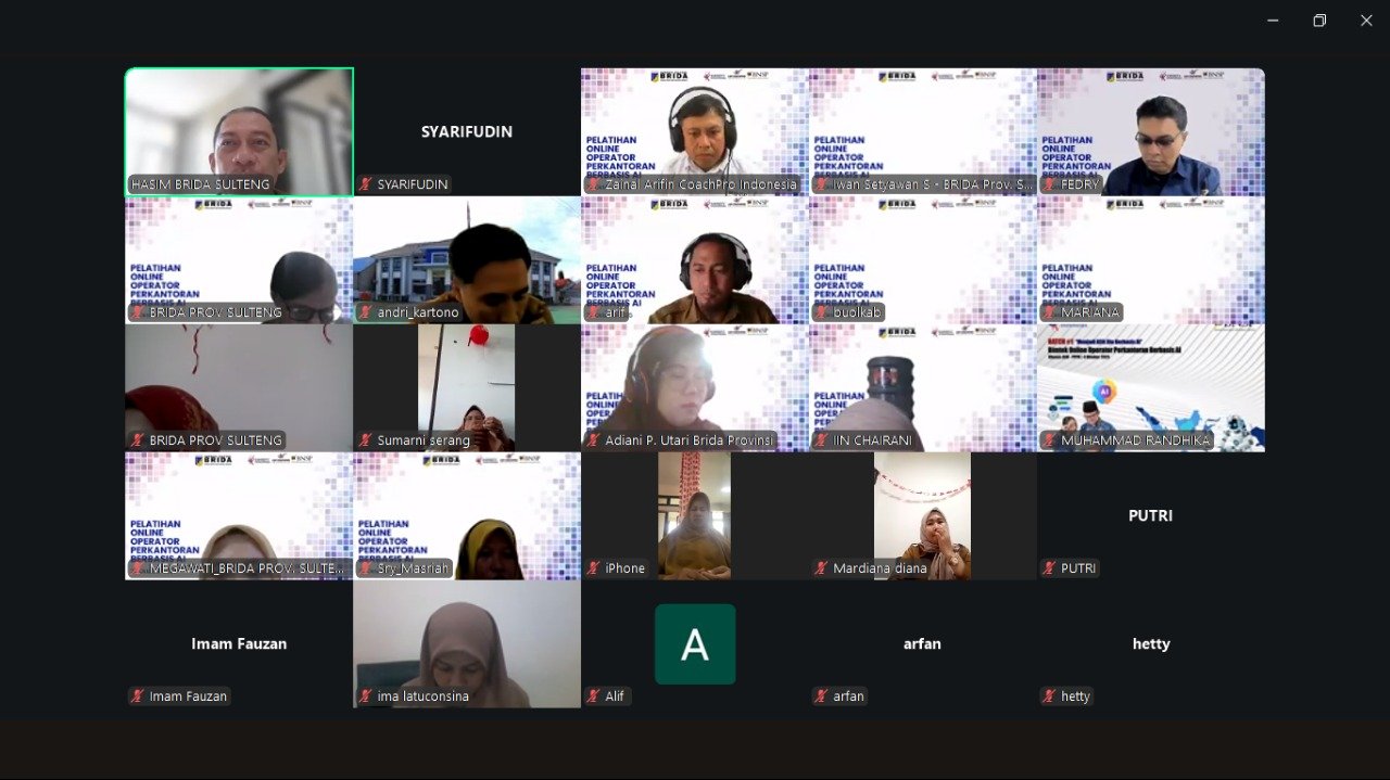 Palu – Bekerja sama dengan Lembaga Pendidikan, pelatihan dan sertifikasi, Karirjitu Indonesia, Badan Riset dan Inovasi Daerah (Brida) Provinsi Sulawesi Tengah beri pelatihan online terkait Operator Perkantoran Berbasis Artificial Intelligence (AI) bagi aparatur sipil negara (ASN) di lingkup Brida Provinsi Sulawesi Tengah. Senin (20/10/2025).