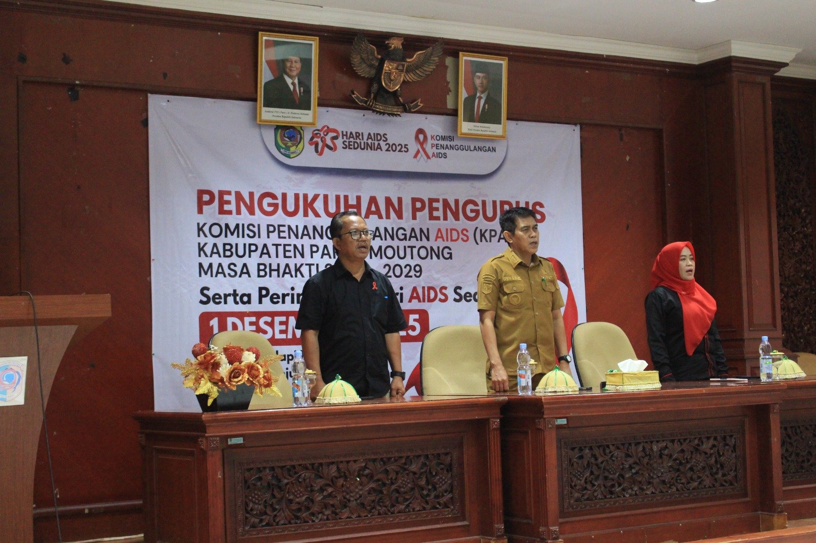 PARIGI MOUTONG — Pemerintah Kabupaten Parigi Moutong memperingati Hari AIDS Sedunia yang dirangkaikan dengan Pengukuhan Pengurus Komisi Penanggulangan AIDS (KPA) Kabupaten Parigi Moutong Periode 2025–2029, Selasa (23/12/2025). Kegiatan tersebut berlangsung di Aula Lantai II Kantor Bupati Parigi Moutong.