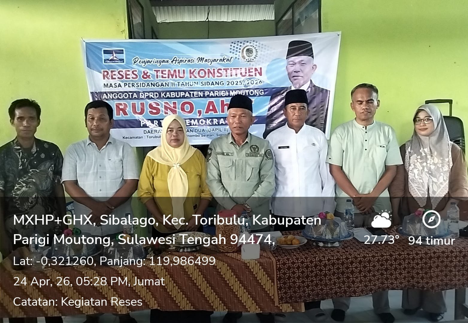 Parigi Moutong – Anggota DPRD Kabupaten Parigi Moutong dari Fraksi Partai Demokrat, Rusno A.h T, melaksanakan agenda Reses Masa Persidangan tahun 2026 di Kantor Desa Sibalago, Kecamatan Toribulu, Jumat (24/04/2026). Pertemuan resmi yang dimulai pukul 15.30 WITA ini menjadi ajang bagi warga untuk menagih janji pemulihan infrastruktur dan hunian pascabencana.