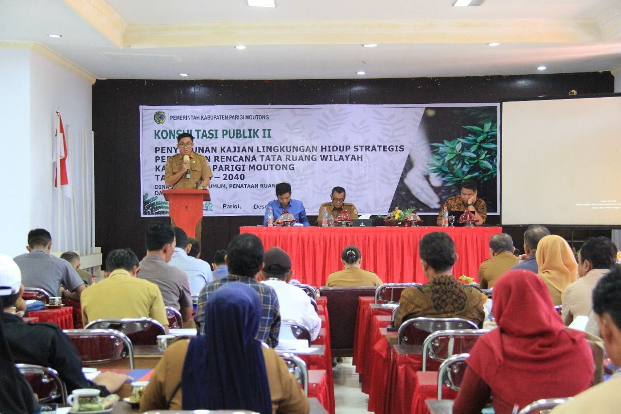Konsultasi Publik II ini bertujuan untuk mempresentasikan dan membahas hasil kajian KLHS yang telah dilakukan, sekaligus membuka ruang dialog untuk menerima masukan dari para peserta yang terdiri dari Kepala SKPD terkait, Camat, Lurah, dan Kepala Desa se-Kabupaten Parigi Moutong. Melalui forum ini, pemerintah daerah berharap adanya penyelarasan pemahaman serta sinkronisasi dalam perencanaan tata ruang yang berkelanjutan.