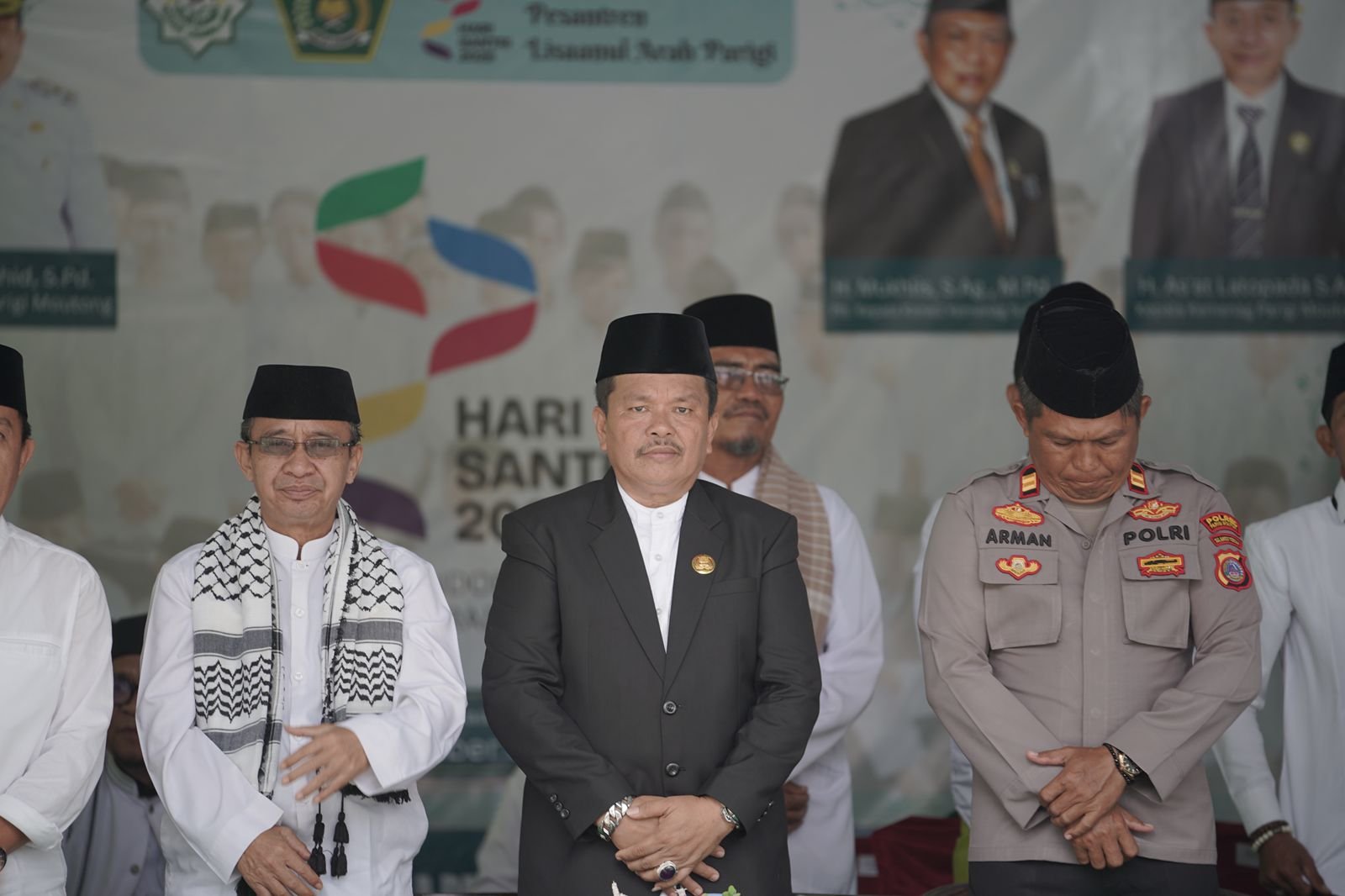 PARIGI MOUTONG – Wakil Bupati Parigi Moutong, H. Abdul Sahid, mewakili Bupati H. Erwin Burase, memimpin upacara peringatan Hari Santri Nasional Tahun 2025 yang berlangsung di Pondok Pesantren Lisaanul Arab, Kelurahan Kampal, Rabu (22/10/2025).